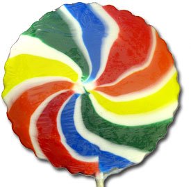 GIANT Rainbow Psychedelic, Check out these GIANT swirl pops! These weigh in at 24 ounces (that's a pound and half) and is NINE inches in diameter! This is not a typo! Including the stick this giant lollipop is 18 inches long. Very big, very colorful, and very beautiful old fashioned pop. Strawberry-banana flavored - handmade in the United States!